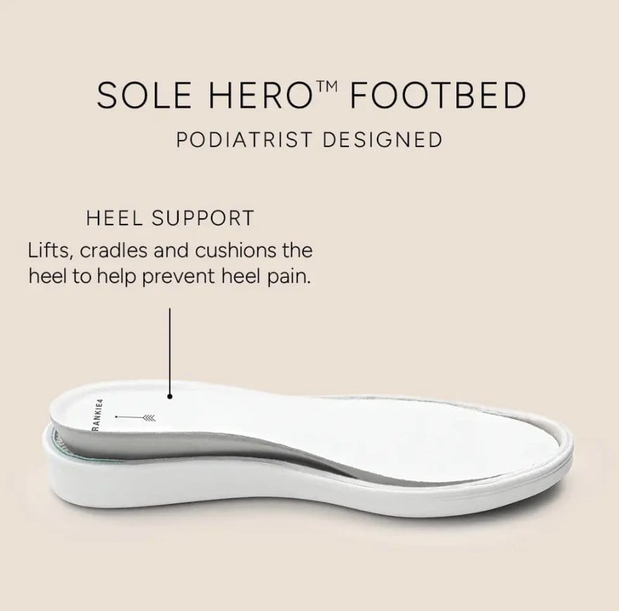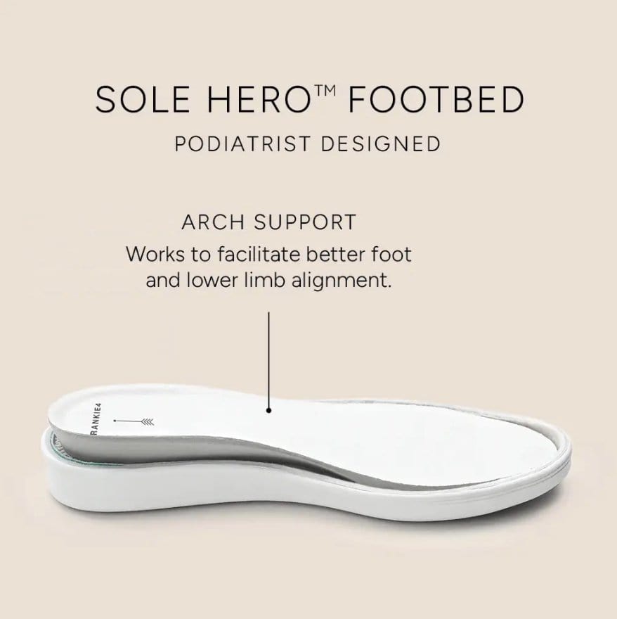 Our Sole Hero™ Footbeds lifts, cradles and cushions the heel, while its arch support goal is to help with better lower limb alignment. Cleverly hidden in the design are two-zones of cushioning, with the aim to prevent pain points.