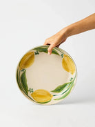 Deep green borders embrace the gentle curve of this serving bowl, creating a perfect stage for pasta tossed with olive oil or summer salads. The interior, adorned with hand-painted botanical lemons, transforms utilitarian function into visual poetry each meal becoming a celebration of the Mediterranean palette that inspired its creation.
